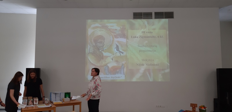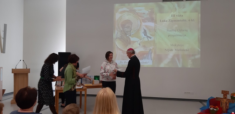 2019 m. gegužės 7 d. Šiaulių vyskupijos Pastoracinio centro Didžiojoje salėje (Tilžės g. 186, Šiauliai) vyko mokinių konkurso „Aš Jus išsirinkau ir paskyriau, kad eitumėte ir duotumėte vaisių! (pgl. Jn 15,16)" baigiamasis renginys ir laureatų apdovanojimas. Renginyje dalyvavusius laureatus pasveikino ir diplomais bei atminimo dovanėlėmis apdovanojo Šiaulių vyskupas Eugenijus Bartulis ir KC vadovė Danutė Kratukienė.Iš daugiau nei 300 dalyvavusių visos vyskupijos 1-12 kl. mokinių prizininke ir trečios vietos laimėtoja tapo mūsų mokyklos 6b kl. mokinė Luka Zigmantaitė. Sveikiname ją ir linkime dar didesnių pergalių ateityje!