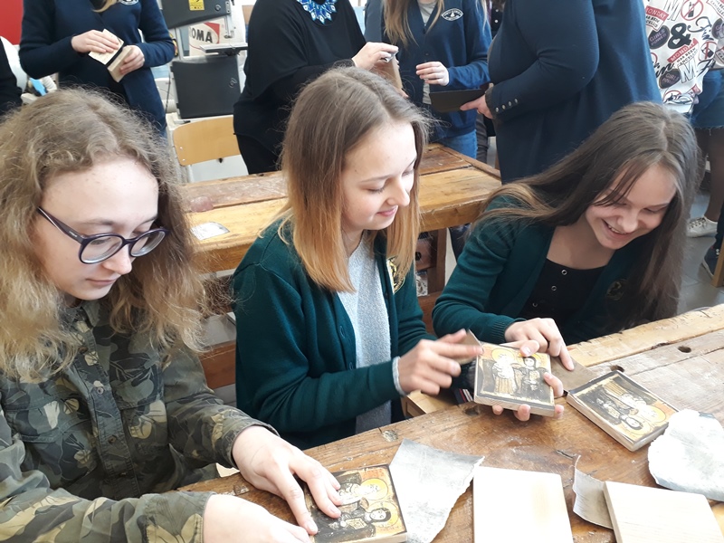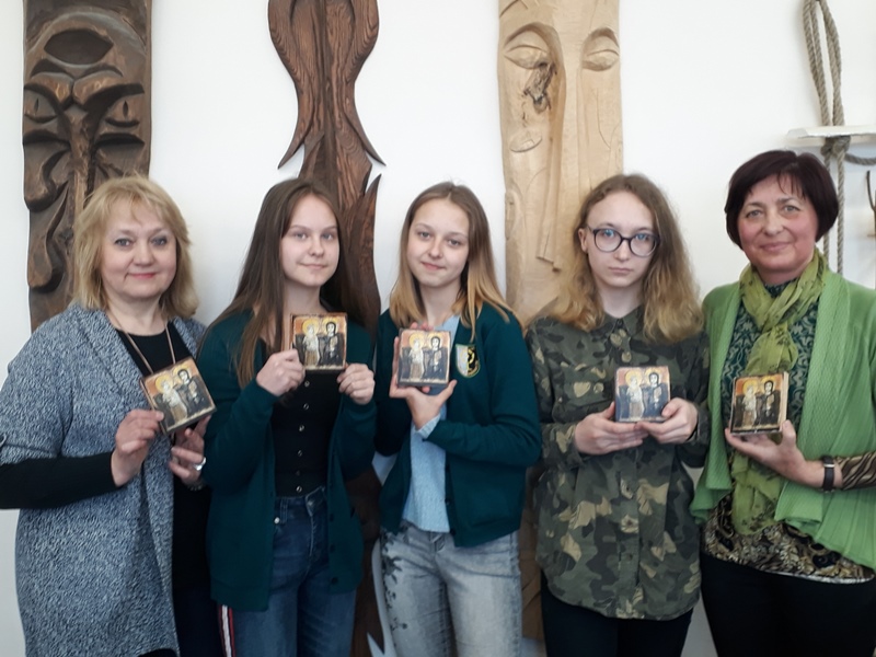 2019-04-08 Šiaulių Medelyno progimnazijoje vyko Šiaulių miesto 7-8 kl. mokinių integruotos tikybos ir technologijų kūrybinės dirbtuvės „Draugystės ikona". Šiame renginyje dalyvavo Kamilė Šandaraitė (7b), Emilija Banevičiūtė(7b), Ingrida Žvigaitytė (8a) kartu su tikybos mokytoja N. Meliniene ir dailės mokytoja I. Jankauskiene. Tai buvo puiki proga pagilinti žinias apie draugiškumą bei krikščioniškojo meno simbolį - ikoną.