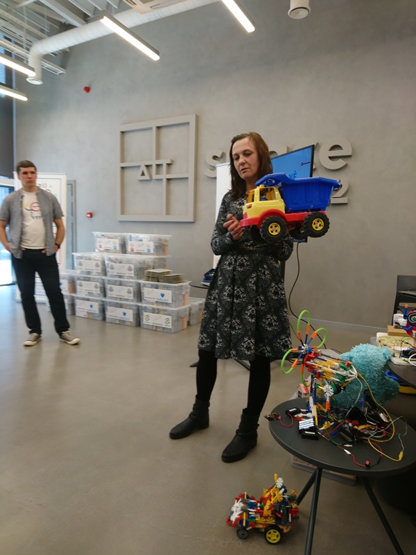 Progimnazijos gamtos mokslų mokytoja I. Bartkevičienė ir informacinių technologijų mokytoja Rūta Norūtienė renginio metu dalijosi patirtimi įgyta dirbant su micro:bit kompiuteriukais, pristatė I etapo penktokų kurtus ir programuotus projektus, dalyvavo integruotos pamokos dirbtuvėse, diskusijose, kaip micro:bit kompiuteriukus integruoti į įvairius dalykus.