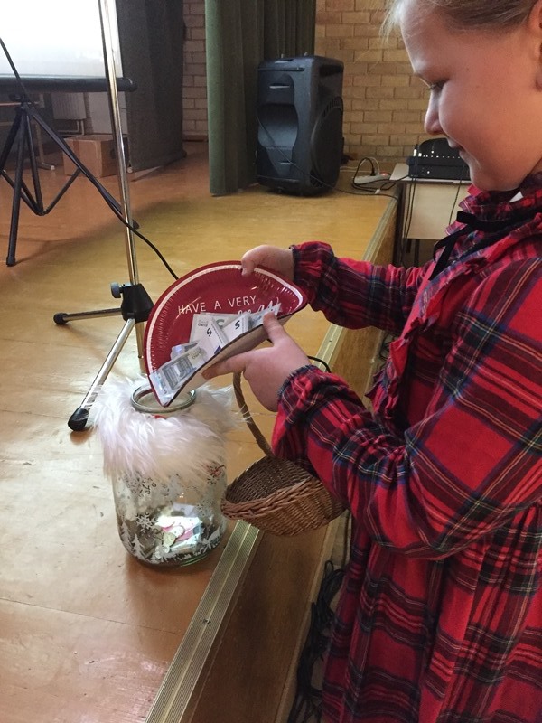 Vidudienį pardavėjai ir pirkėjai (vyresniųjų klasių mokiniai, mokytojai) rinkosi į aktų salę. Išgirdus Urtės ir Martyno gyvenimo ir bėdų istorijas, kilo dar didesnis noras jiems padėti. Taigi prekyba vyko aktyviai, audringai, su puikia reklama. Renginio pabaigoje geri darbai įgavo piniginę išraišką –