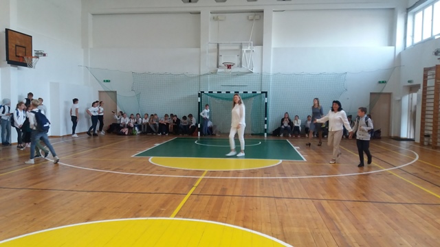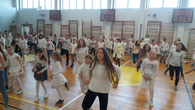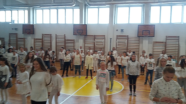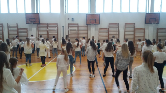 Tą dieną didžioji dalis mokinių, mokytojų, mokyklos darbuotojų pasipuošė baltais rūbais. Per ilgąją pertrauką rinkomės į sporto salę. Pakalbėjome, pajudėjome ir susikibę rankomis vieni kitiems linkėjome: