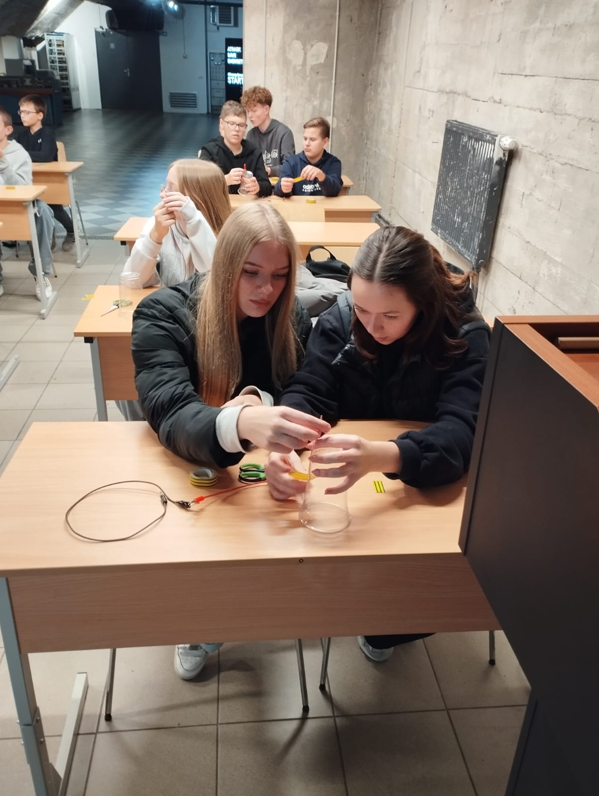 7a klasė apsilankė Energetikos ir technikos muziejaus edukacinėje programoje „Kaip Tomui įsižiebė lemputė”. Ir šios edukacinės programos metu nagrinėjo elektros energijos naudą, fizikinius jos veikimo principus ir, svarbiausia, pasijuto visai kaip T. Edisonas, nes sukonstravo savo lemputę! 7b klasės edukacinio užsiėmimo interaktyvioji dalis buvo paremta italų mokslininko A.Voltos išrastu ir 1800 m. visuomenei pristatytu „Voltos elementu".Edukacijos metu mokiniai gamino elementą, generuojantį nedidelę elektros energiją, galinčią įžiebti šviesos diodą. Mokytojos I.Vizgailienė, I.Bartkevičienė