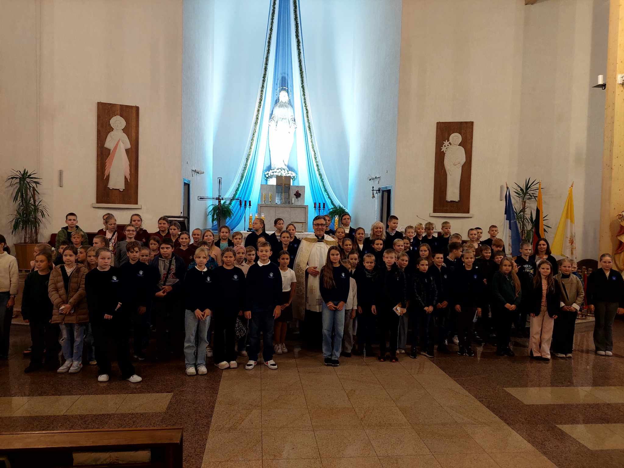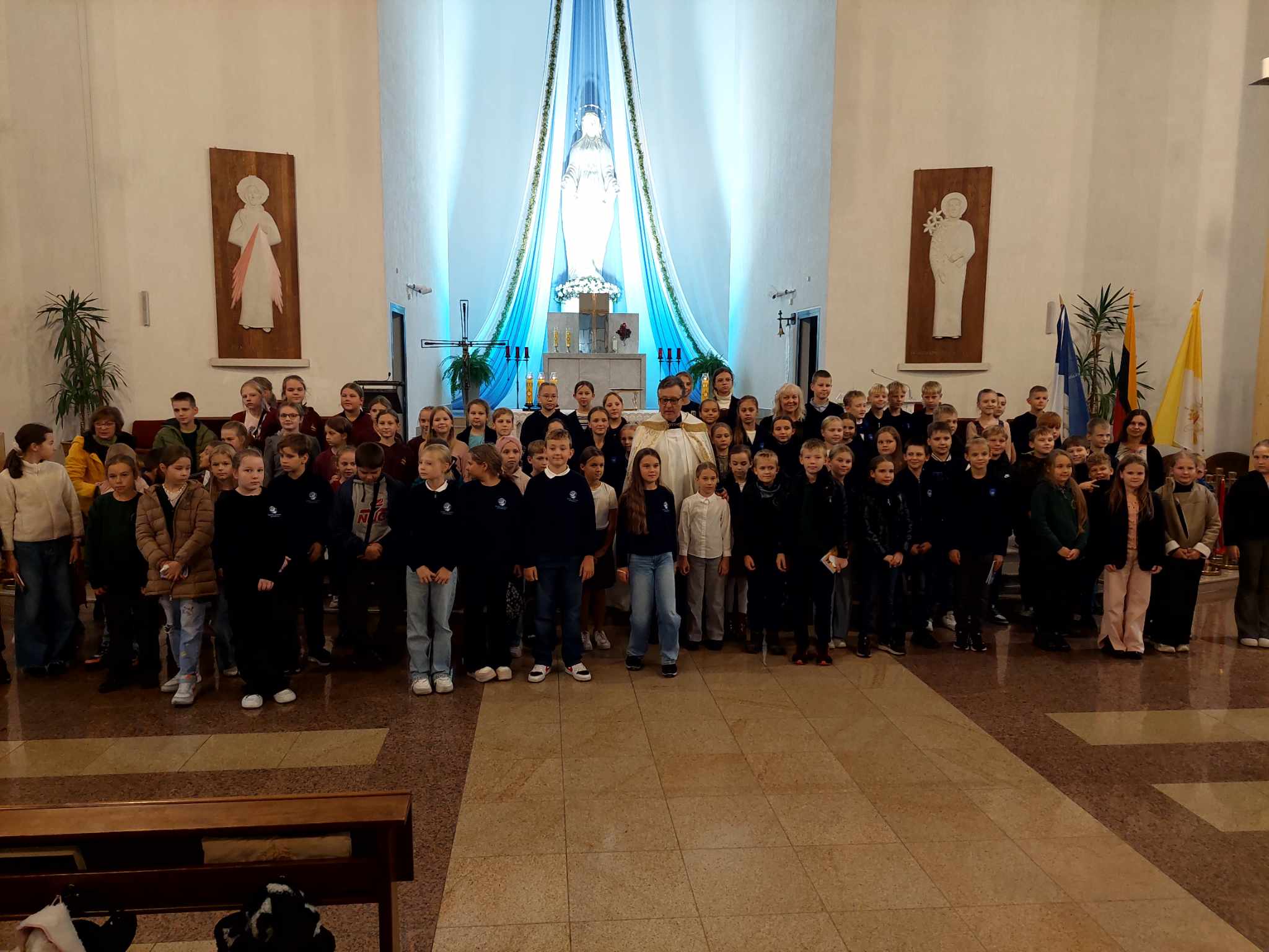 Spalio 3d. minėjome Pasaulinę vaikų adoracijos dieną. Ketvirtokai rinkosi į Švč. Mergelės Marijos Nekaltojo Prasidėjimo bažnyčią ir čia savo mintis ir maldas skyrė Jėzui Švenčiausiame Sakramente. Kartu su vaikučiais buvo kleb. G.Jonikas, katechetės ir tikybos mokytojos. Akimirka, praleista prie Švenčiausiojo Sakramento, uždegė mūsų širdis meilei ir draugystei. Šią šviesą parsinešėme ir į savo namus. Vaikų džiaugsmas akyse atskleidė susitikimo su Kristumi bendrystę ir šventumą. Dėkoju dalyvavusiems vaikučiams ir tėveliams. Tikybos mokytoja N. Melinienė