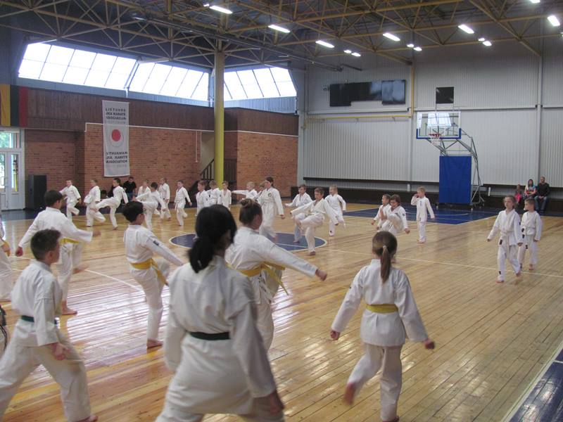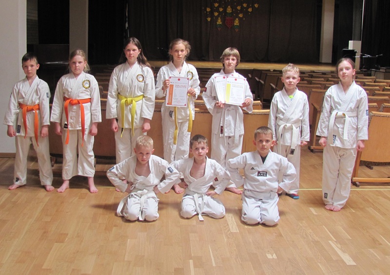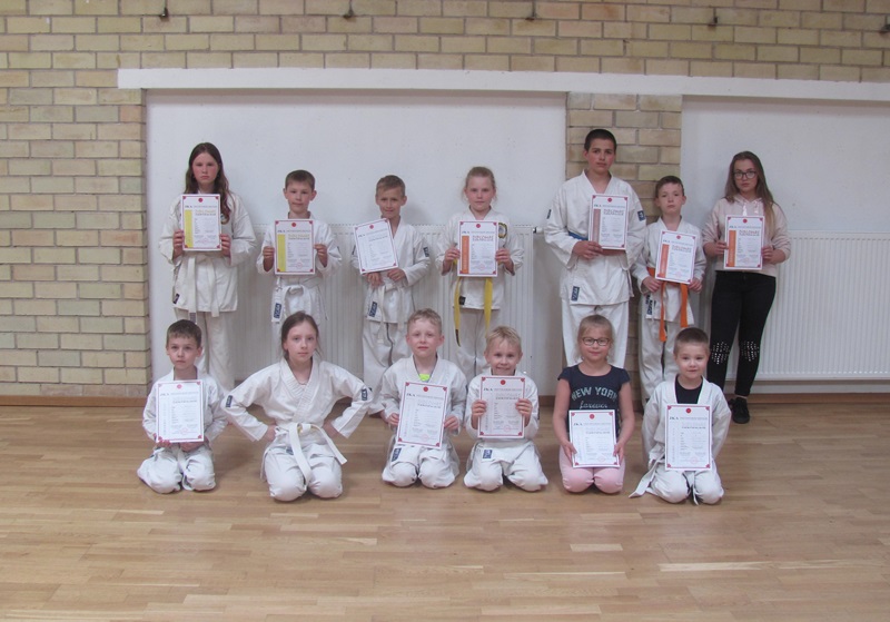 Baigiantis mokslo metams, NVŠ Šiaulių m. vaikų karatė šotokan technikos veiksmų mokymo programos dalyviai laikė egzaminus.