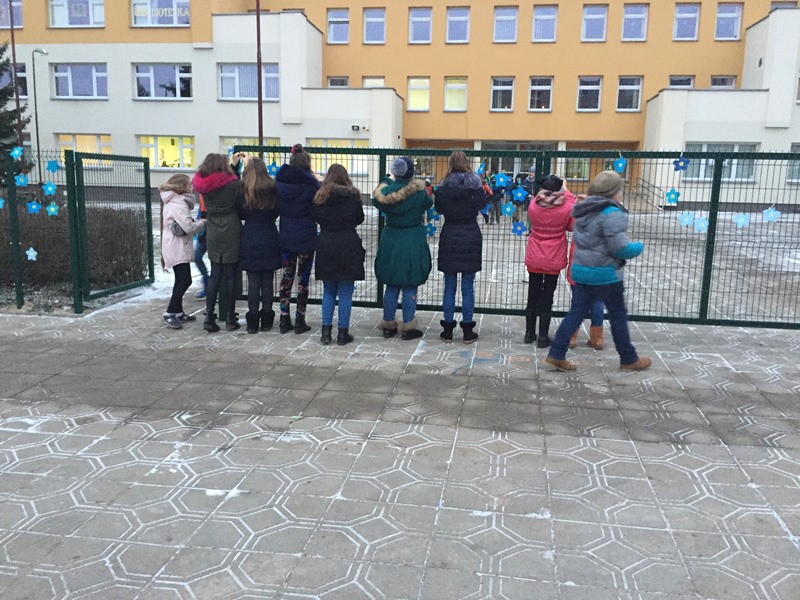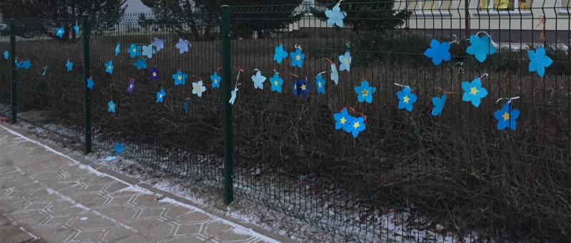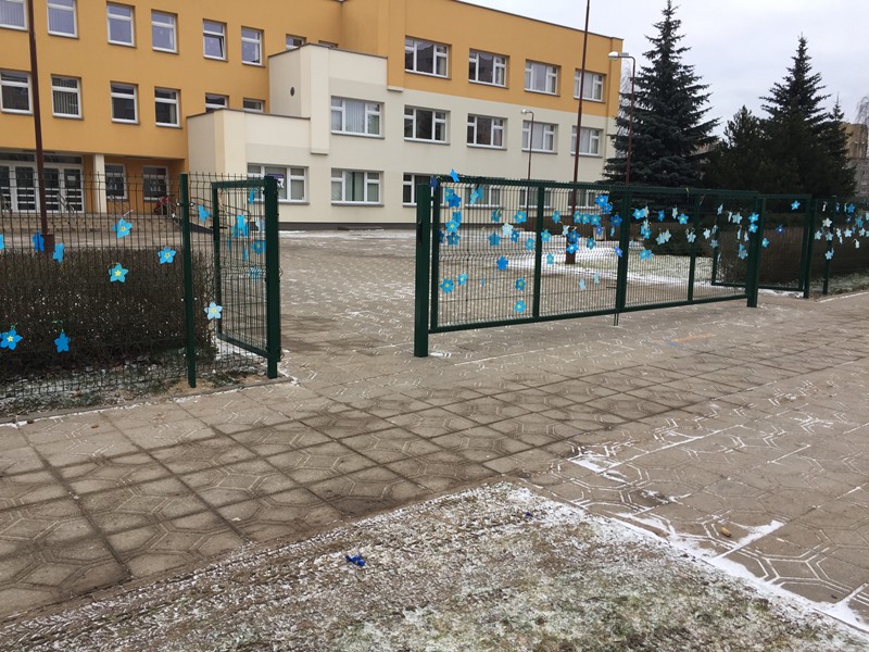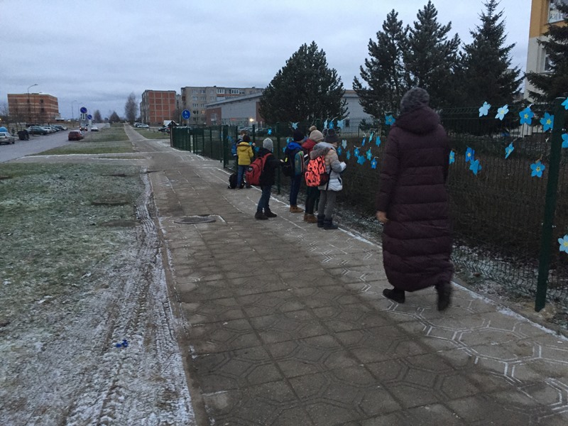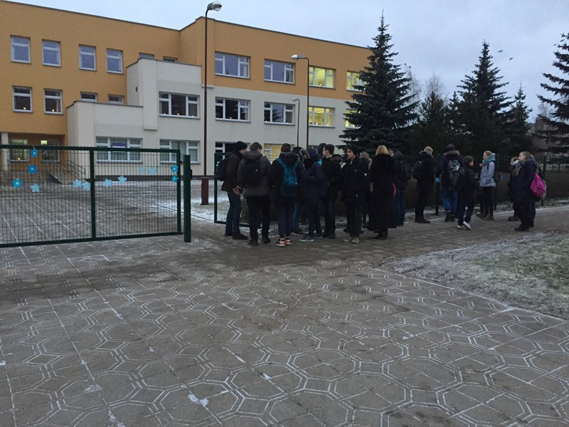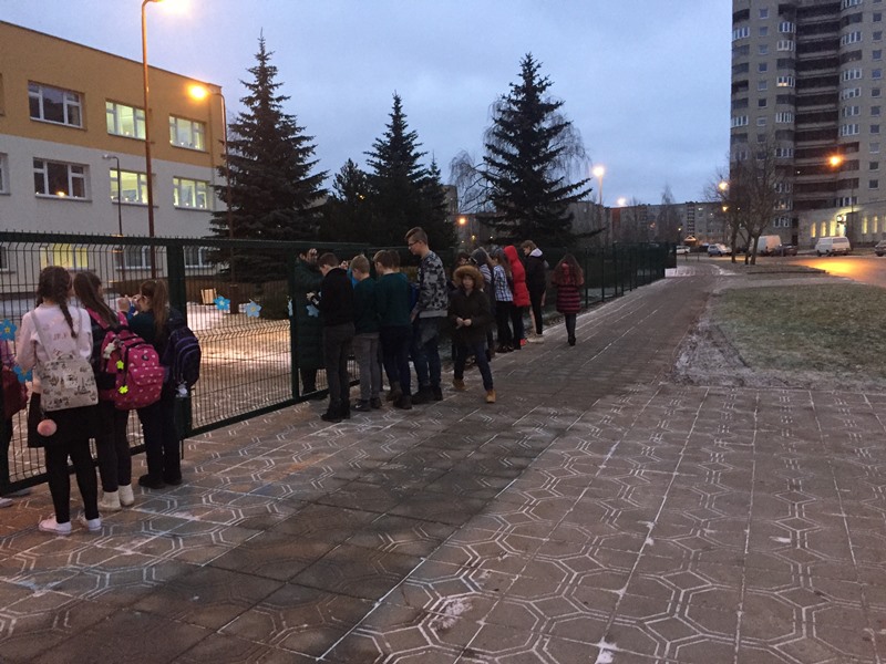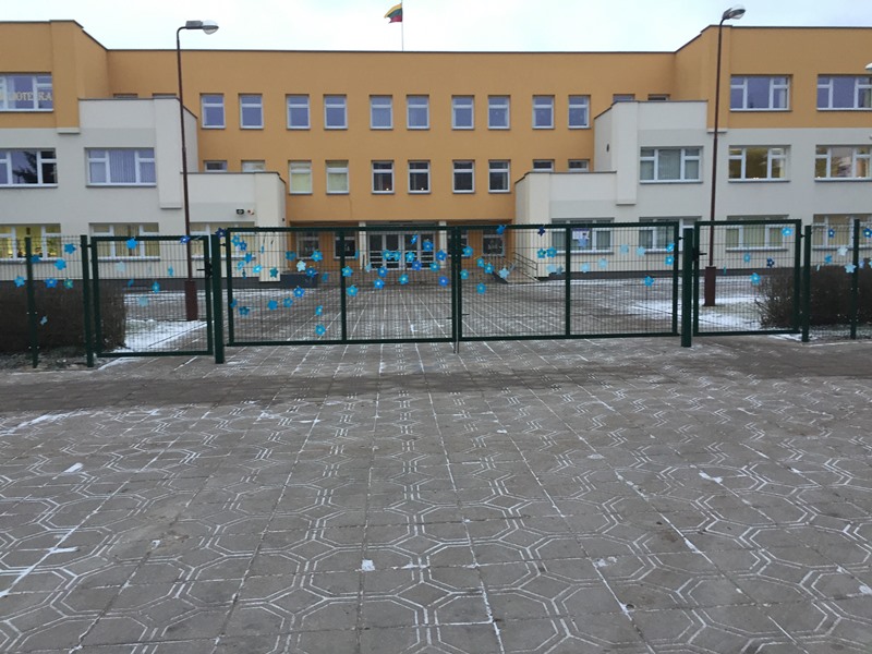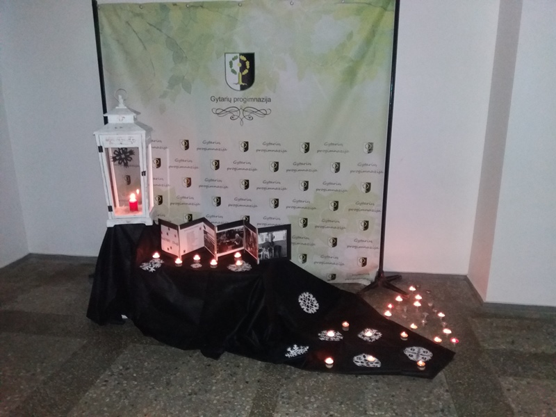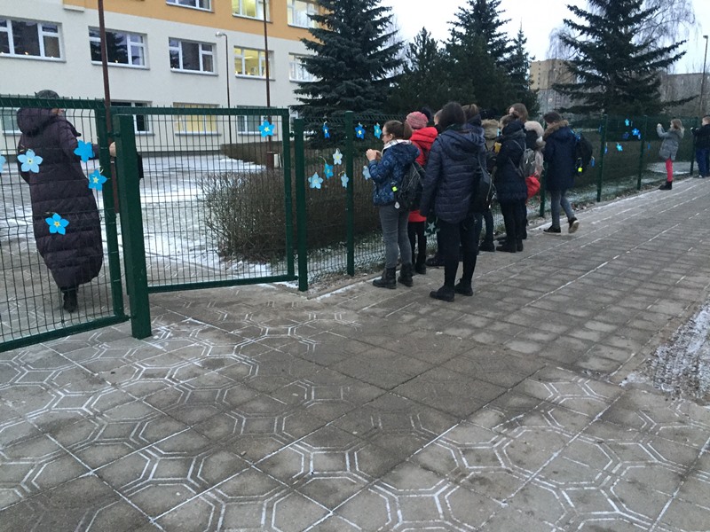 Ateinančius į mokyklą pasitiko fojė mokytojos I.Jankauskienės paruošta instaliacija, plazdenančios vėjyje žvakutės. Nuo 8 valandos ryto visuose languose užsižiebė žvakės, prasidėjo Prisiminimų ir pagarbos pamoka. Mokiniai kalbėjosi, žiūrėjo filmus, piešė neužmirštuoles – šios dienos simbolius. Didelės neužmirštuolės papuošė mokyklos tvorą, o mažutės (jas gamino 5a su mokytoja V.Stočkiene) buvo segamos į atlapus praeiviams, mokyklos darbuotojams.