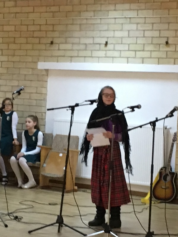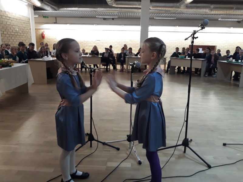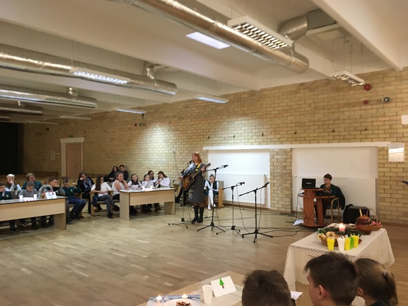 Anglų kalbos mokytoja Asta ir muzikos mokytoja Neringa kartu su vyr. klasių mergaičių ansambliu bei pradinių klasių mažosiomis dainininkėmis džiugino visų širdis besiliejančiais muzikiniais garsais. Muzikiniu žaidimu pralinksmino antrokės Goda ir Miglė. Buvo smagu žiūrėti , kaip kiekviena klasė, pasiruošusi po Kūčių patiekalą, jį pristatė ir paaiškino jo reikšmę ant kūčių stalo. O senoviška kūčia visus pavaišino tikybos mokytoja Nijolė. Labai įdomu buvo klausytis lietuvių kalbos mokytojos Vitalijos Stapulionienės žemaitiškai sekamos pasakos. Supratome, kaip svarbu puoselėti savo papročius ir tradicijas, kad būtume tikrais lietuviais.