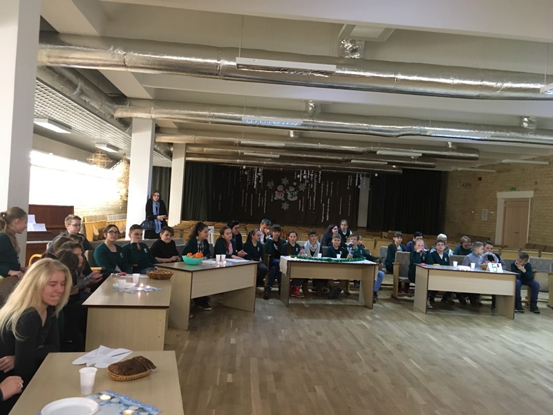 Tokiais kviečiančiais žodžiais mūsų mokykloje gruodžio 14d. po pamokų prasidėjo 5-8kl. mokinių Adventinė popietė „Sušildyk gerumu". Popietės vedėjai - septintokė Anastasija Šarpilo ir aštuntokas Povilas Dryža kvietė visus adventiniam susikaupimui, draugiškumo, atgailos puoselėjimui; mokė lietuviškų žaidimų ir net burtų.