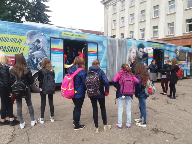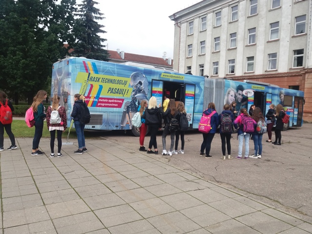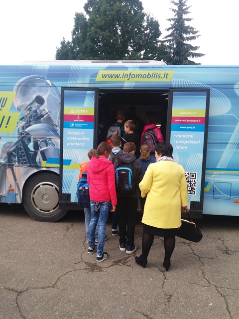 Rugsėjo 12 ir 13 dienomis mūsų progimnazijos mokiniai klasėmis ir grupelėmis su mokytojais vyko į miesto centrą, į Prisikėlimo aikštę. Ten abi dienas svečiavosi interaktyvūs LINPRA infomobiliai. Mokiniai susidomėję klausėsi ir dar atidžiau stebėjo 3D spausdintuvų, staklių valdymo, gamybos ciklo simuliacinių programų, testavimo įrangos ir kitų mokomųjų stendų veiklą. Penktokams itin patiko programinių kompiuteriukų, kurių laukiame ,,atvykstant" į mokyklą, pristatymas. Taigi penktokai jau žino, ką su jais nuveiks, dabar belieka tik sulaukti rėmėjų dovanos.