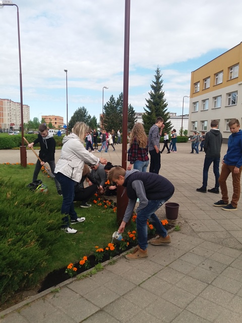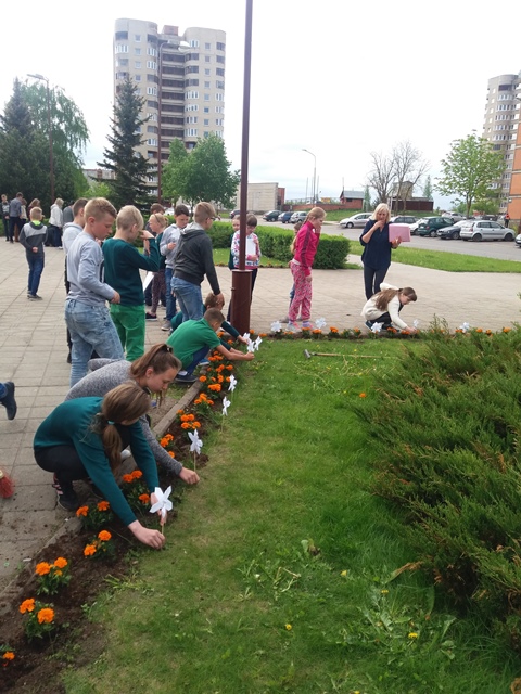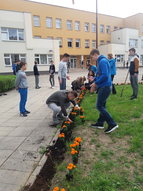 Tradiciškai puošėme mokyklą. Vyriausieji – aštuntokai – šiemet buvo atsakingi už gėlių pasodinimą progimnazijos kieme. Ir jie šį darbą atliko išties atsakingai ir stropiai. Gėlių pasodinome rekordiškai daug, todėl mūsų gėlynai dar išsiplėtė ir pagražėjo. Ačiū mokiniams, tėveliams ir jiems padėjusiems mokytojams.