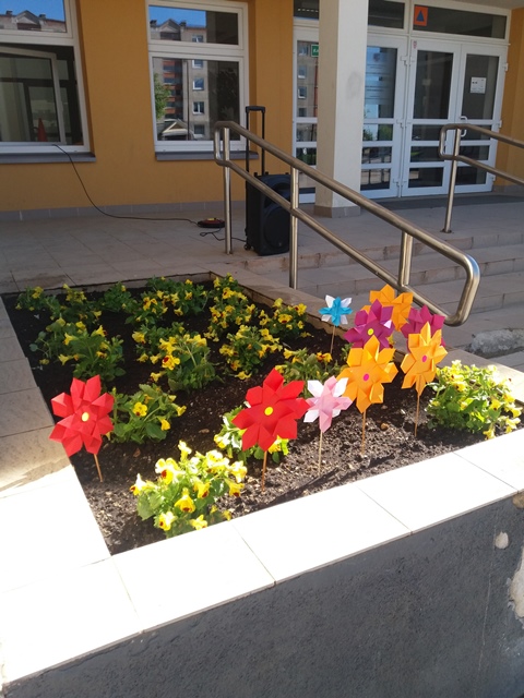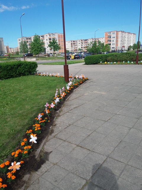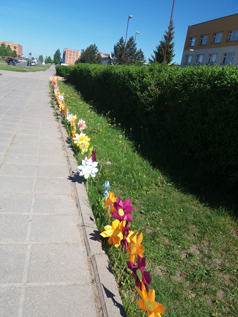 Pradinukai taip pat puošė mokyklą. Tik savo pagamintomis gėlėmis, todėl grožio ir spalvų padvigubėjo.
