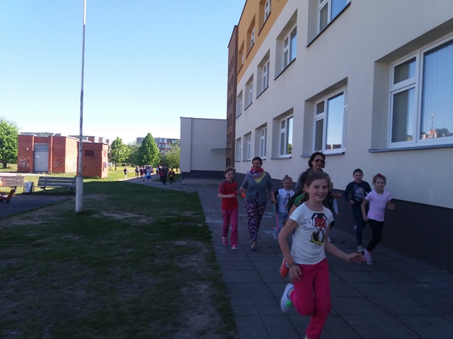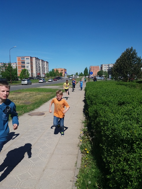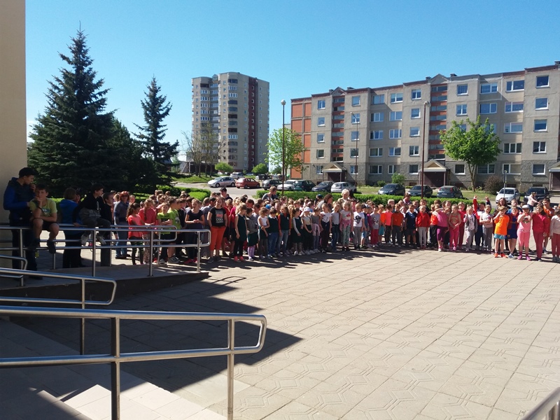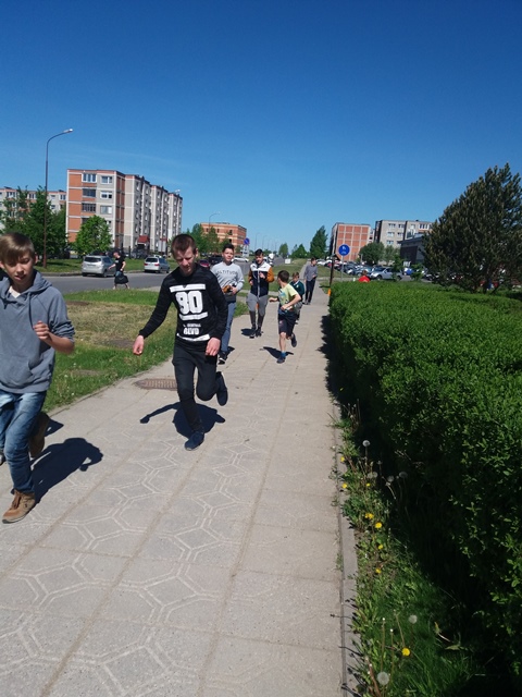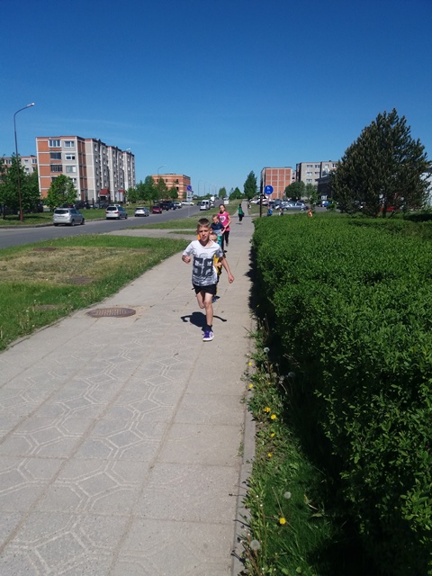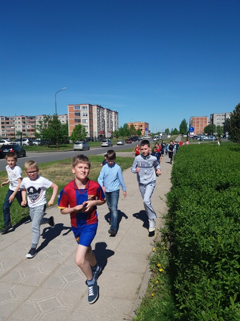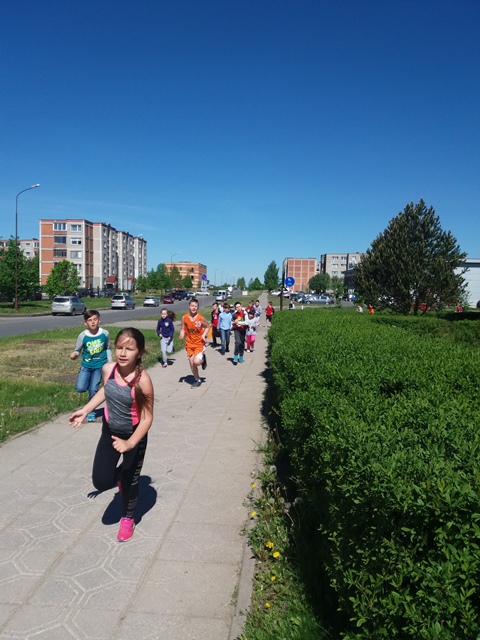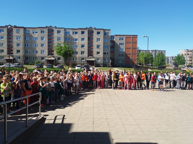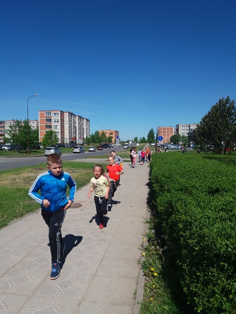 Na, ir kaip jau tapo tradicija, visi bėgome Gimtadienio mylią. Patys nuoširdžiausi bėgikai – pradinukai, padėję antrąjį mylios ratą apibėgti mokytojams.