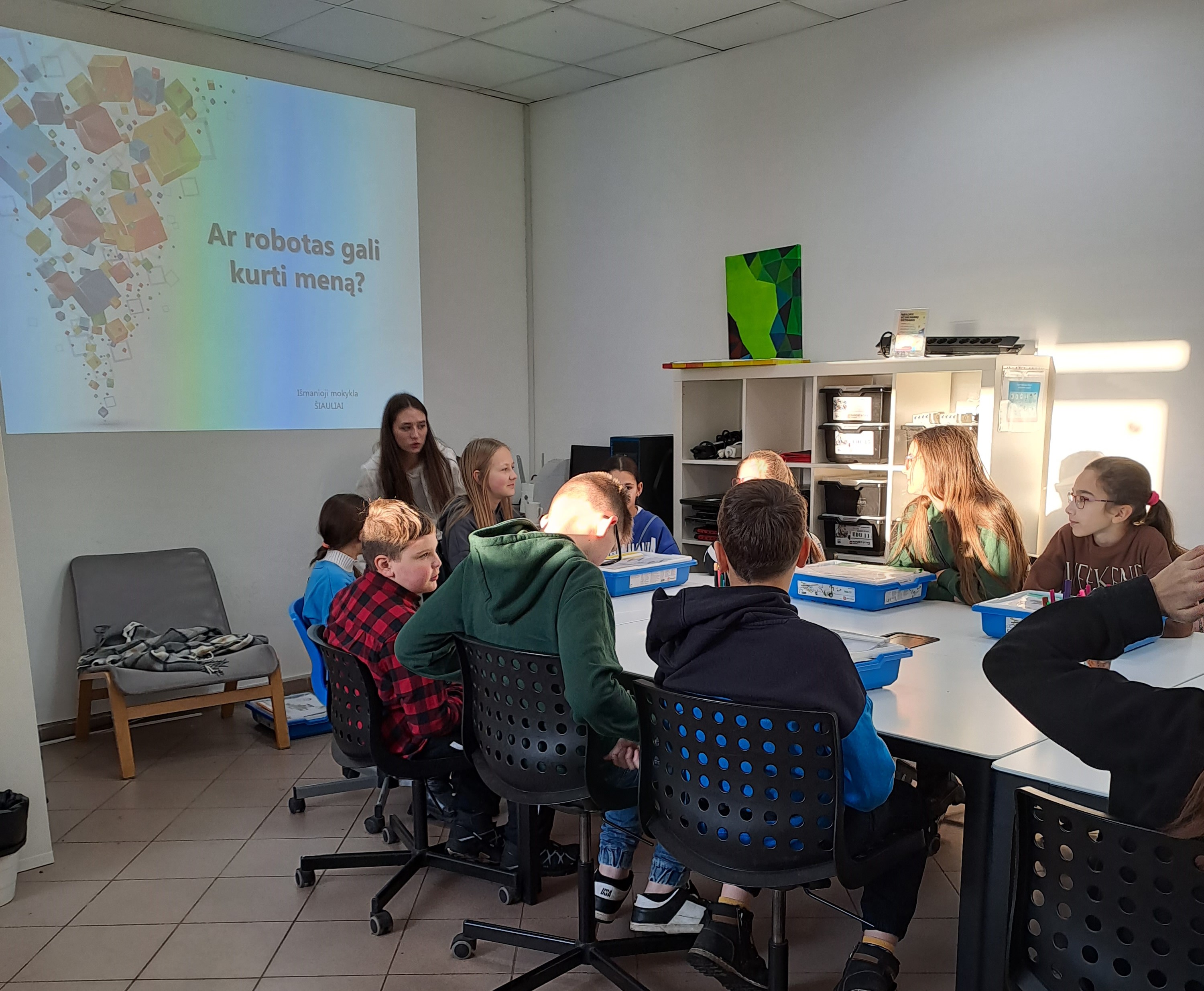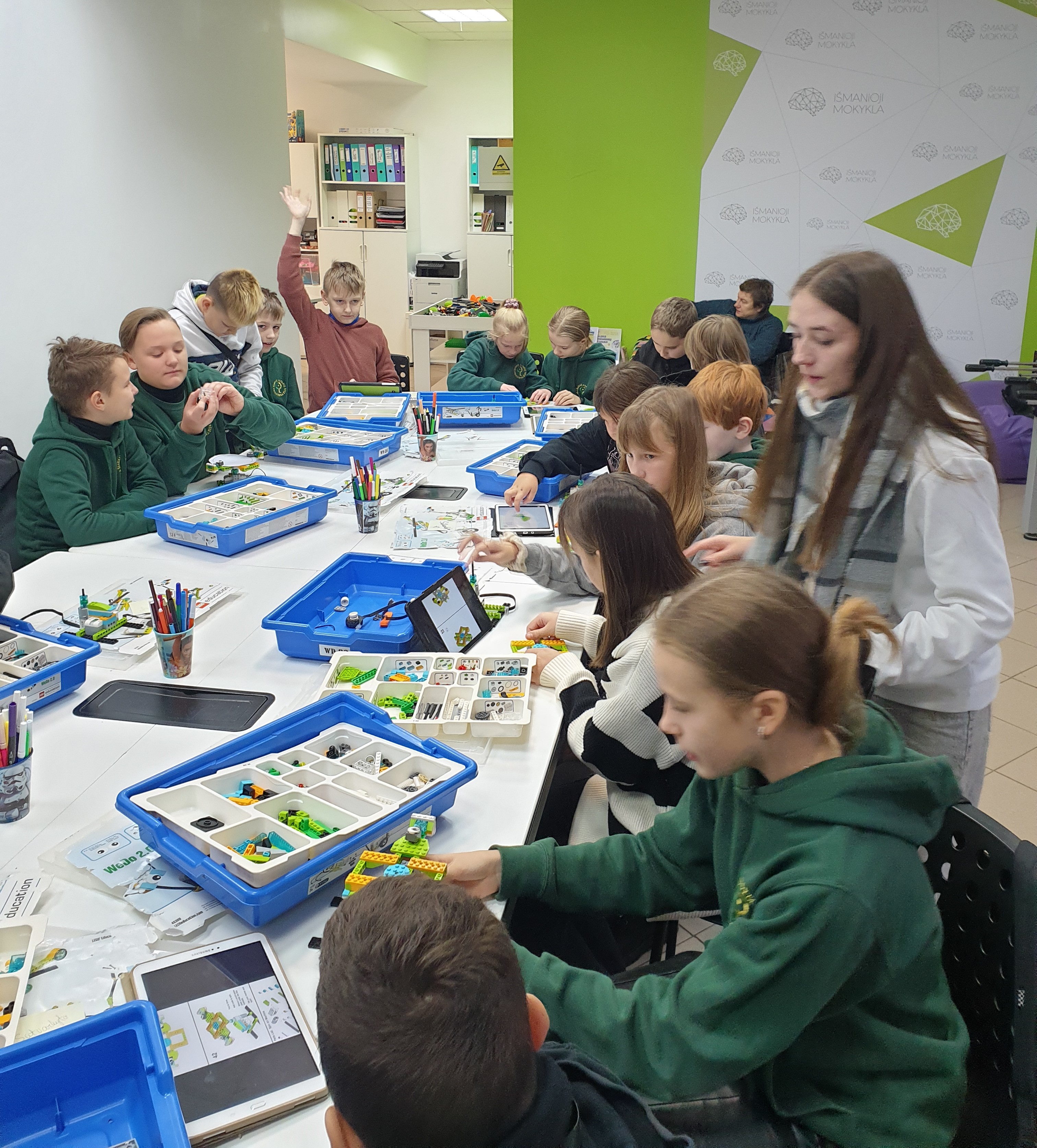 Lapkričio 22 d. 5-6 kl. mokiniams vyko integruotas ugdymas netradicinėje aplinkoje. Mokiniai dalyvavo STEAM veiklose „Išmaniojoje mokykloje“. Dalyvaudami edukacijose „Ar robotai gali kurti meną?“ ir „Robotų kovos“., mokiniai ugdė pažinimo, kūrybiškumo, emocinę, socialinę kompetencijas. Bendradarbiaudami mokiai turėjo visapusiškas galimybes iš arti pamatyti, kas naujo yra sukuriama technologijų pasaulyje ir kokios ateities perspektyvos jų laukia. Mokiniai patys konstravo konstruktoriais, surinktus robotus programavo piešti ir tarpusavyje kovoti.
