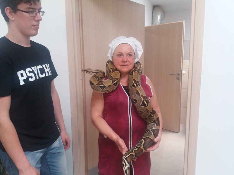 Mokiniai labai susidomėję klausėsi pasakojimų apie šiuos gyvūnus, klausinėjo apie laikymo sąlygas ir gyvūnų nuotykius. Drąsiausieji ėmė į rankas vorus, gyvates, peliukus... o kur dar daugybė įdomių kadrų su gyvūnais...