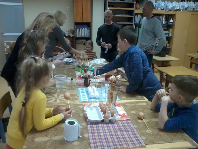 Čia vyko smagi šventė – VAIKŲ VELYKĖLĖS. Šį kartą pagrindiniai kiaušinių margintojai, velykinių darbelių kūrėjai buvo ne suaugę, o vaikučiai. Mažieji žaidė, vėliau kiaušinius įvairiausiomis technikomis margino, kad turėtų ką ridenti. Didžiulį džiaugsmą dovanojo pūkuoti mokyklos svečiai – triušiukai. Vaikams teko rimtas ir atsakingas darbas – pūkuočiams išrinkti vardus. Daugiausiai juoko sukėlė originalus vardas, tekęs mamytei triušei – Buldozeris.