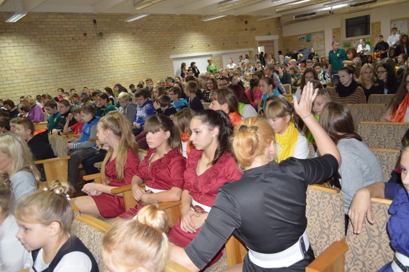 Lygiai vidurdienį į salę sugužėjo didžiulis būrys svečių iš 12 miesto ugdymo įstaigų: „Saulės" pradinės mokyklos, Lieporių, „Romuvos“, S.Daukanto, S.Šalkauskio, „Saulėtekio" gimnazijų, Salduvės, V.Kudirkos, Jovaro progimnazijų, Šiaulių miesto moksleivių namų, Šiaulių logopedinės mokyklos, „Ringuvos" specialiosios mokyklos. Žinoma, pasirodė ir mūsų progimnazijos dainininkai. Šokėjai, dainininkai, muzikantai, jaunieji artistai padovanojo fantastišką didžiulį ir šiltą koncertą, kuriam ir pasibaigus scenoje dar skambėjo muzikos improvizacijos.