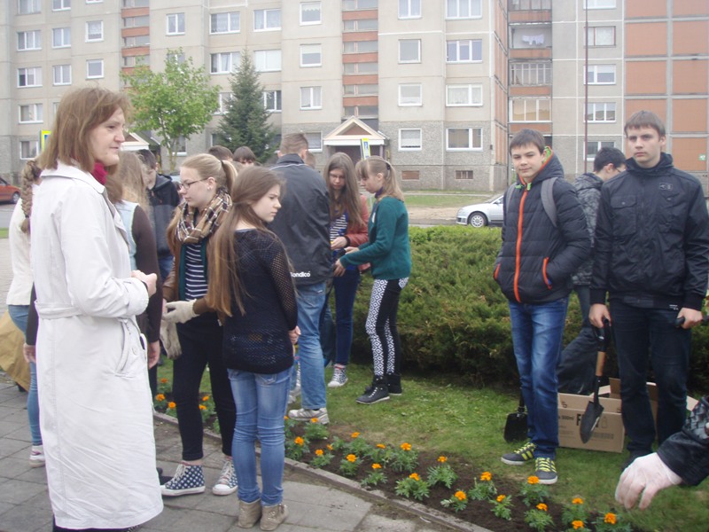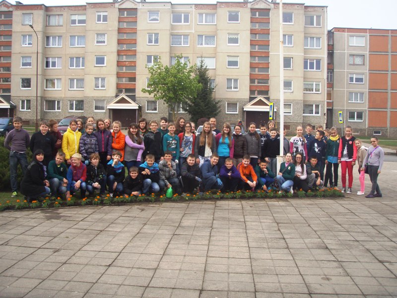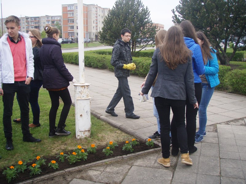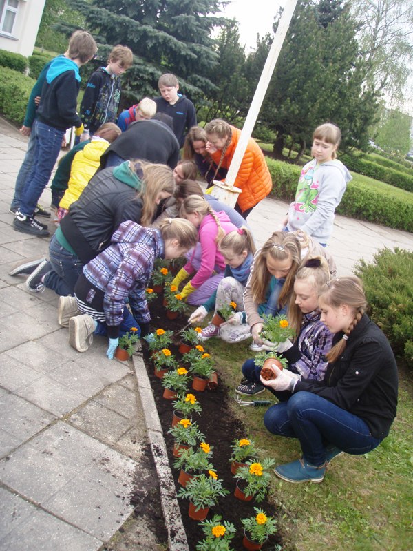 Jau tampa graži tradicija gimtadienio proga papuošti mokyklos aplinką. Praėjusiais metais sodinome ąžuoliukus, o šiemet kiemą papuošėme gėlėmis.