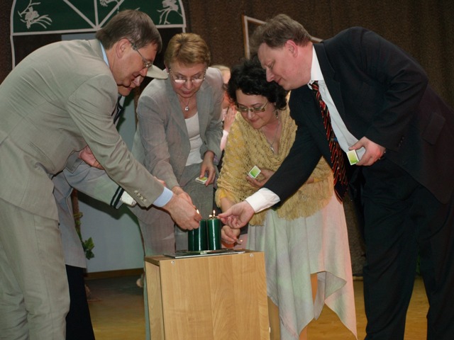 Gytarių progimnazijos direktorius R. Pečeliūnas nuoširdžiai padėkojo už dėmesingumą ir įgyvendintą progimnazijos bendruomenės svajonę miesto merui, tarybos nariams, administracijai, už darbą persikraustant - visai Gytarių bendruomenei.