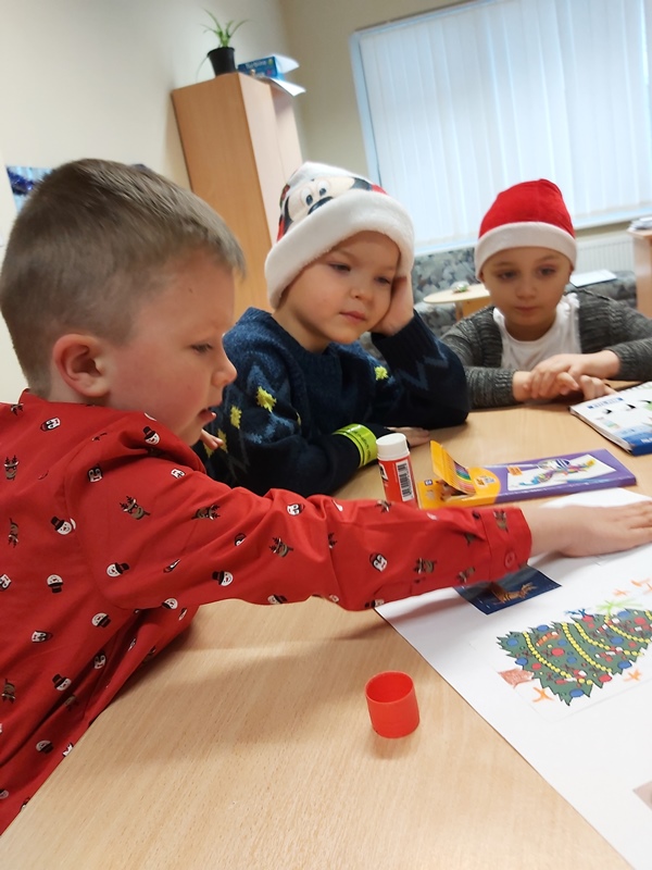Šventės dalyviai dekoravo angeliukus, kūrė kalėdinę pasaką, žaidė žaidimus. Vaikai buvo linksmi, kūrybiški, patyrė daug gerų emocijų.