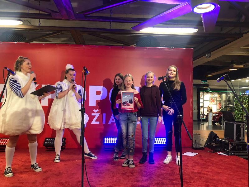 Mūsų mokyklos būrelis mokinukių kartu su savo dailės mokytoja I. Jankauskiene „Dizaino studijoje" kūrė, gamino suvenyrus iš molio, medžiagos, medienos ir pardavinėjo ,,Akropolyje" surengtoje labdaros mugėje „Gera žinia- Kalėdos jau čia". Surinktos lėšos buvo paaukotos onkologinėmis ligomis sergantiems vaikams.