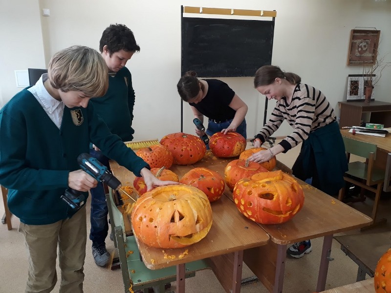 Spalio 24 dieną mūsų mokyklos mokiniai dalyvaus CH. Frenkelio vilos parke vykstančioje Moliūgų šventėje. Mokiniai kartu su savo technologijų mokytojais I. Jankauskiene ir J. Baršausku kruopščiai ruošėsi, pjaustydami moliūgus. Šioje moliūgų- žibintų švieselių jūroje puikuosis Gytariečių kūriniai