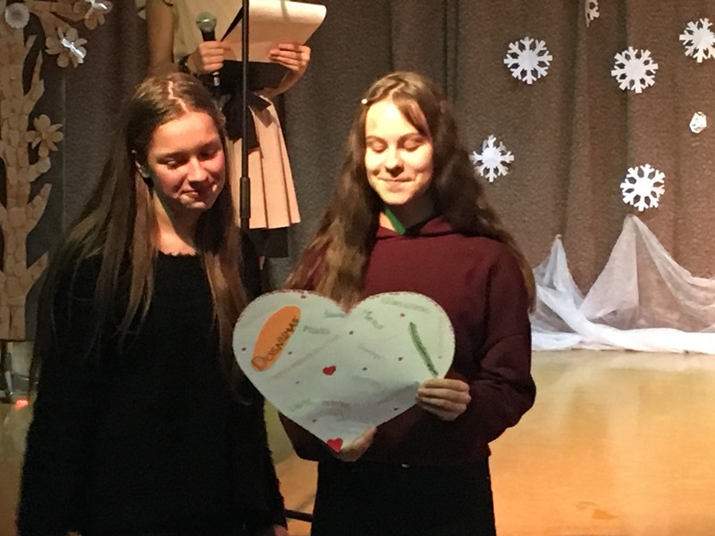 Popietėje, kuriai puikiai vadovavo Kamilė Šandaraitė (7b) ir tikybos mokytoja N. Melinienė, skambėjo ir Šv. Rašto žodžiai, ir skambios dainos, kurių mažųjų klasių ansamblį ir vyr.klasių merginas išmokė muzikos mokytoja Neringa Ganusauskienė. Šios popietės pabaigoje kiekviena klasė, o taip pat ir mokytojai, pristatė savo išsitrauktą vertybę ir už nuoširdų darbą buvo apdovanoti saldžiomis dovanėlėmis.