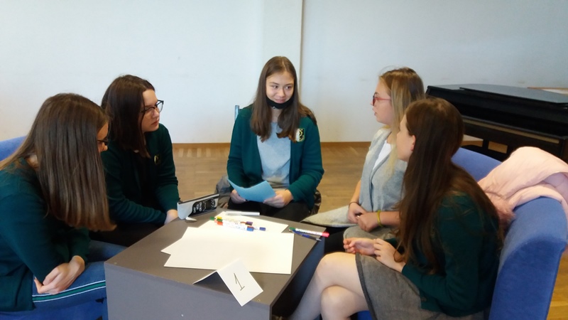Būrelis aštuntokių – Kamilė, Anastasija, Kamilė, Gabija ir Ema – dalyvavo kūrybinėse dirbtuvėse „Šimtmečio Šiauliai. 100 profesijų", į kurias pakvietė Medelyno progimnazija.
