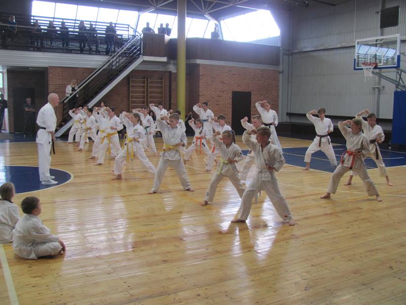 Mokiniai lankantys karatė užsiėmimus, susipažinę su karatė stovėsenomis, gynybiniais blokais, smūgine technika, išmokę kata (kompleksiškai susieta gynybos ir puolimo veiksmų seka) laiko kvalifikacinius karatė diržų egzaminus, kad įgytų tam tikrą karatė laipsnį kiu. Kuo technika tikslesnė ir stipresnė tuo diržo spalva tampa tamsesnė. Egzamino metu yra vertinama karatė technikos veiksmų koncentracija, jėga, greitis, koordinacija, tikslumas. Egzaminai prasidėjo nuo pačio žemiausio 10-9 kiu, balto diržo egzamino. Iš Gytarių karatekų grupės pirmą baltą diržą (10 kiu) laikė ir sėkmingai įvykdė reikalavimus Gediminas Strolys, Gytis Martinkus, Edgaras Linkus ir Kotryna Lušnikova. Antrą baltą diržą (9 kiu) išlaikė Justinas Strazdauskas, Noelis Jankauskas ir Ilja Simanovič. Geltonu pusiniu diržu (8/5 kiu) įvertinti Neitonas Kirkickis, Pijus Tydmanas ir Goda Kazlauskaitė. Evita Eikinaitė išlaikė pusinį (7/5 kiu), o Ema Gerulskytė pilną (7 kiu) oranžinį diržą. Egzaminatorius R.Montvidas pagyrė Kotryną Lušnikovą ir Emą Gerulskytę už puikiai pademonstruotą karatė techniką. Pagarba visiems dalyvavusiems. Karatė panašus į verdantį vandenį: jeigu nekurstysi ugnies, vanduo atvės.Todėl nuosekliai, sistemingai reikia treniruotis ir siekti užsibrėžto tikslo.