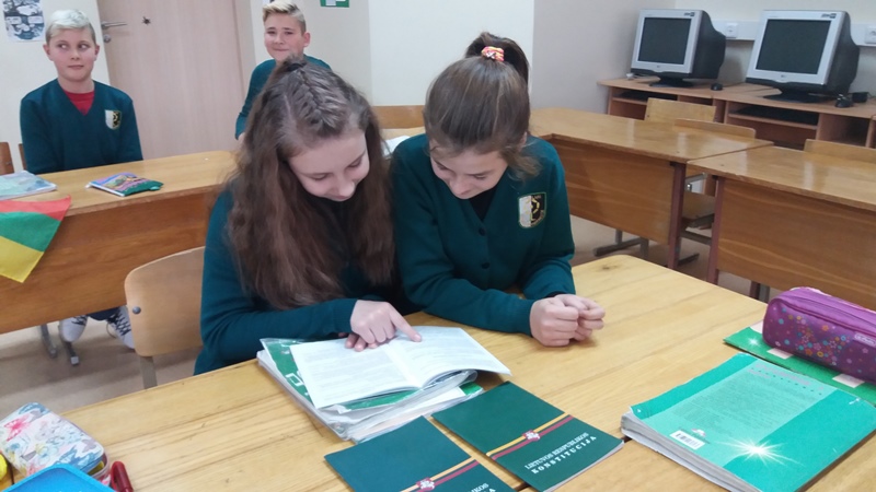 Mūsų mokyklos mokiniai taip pat paminėjo Konstitucijos dieną. Anglų kalbos mokytoja Asta Jogminienė, istorijos mokytoja Vilija Stočkienė mokiniams papasakojo apie Konstituciją, kartu su mokiniai aptarė piliečių teises ir pareigas, piešė piešnius, žiūrėjo filmus, klausėsi dainų.