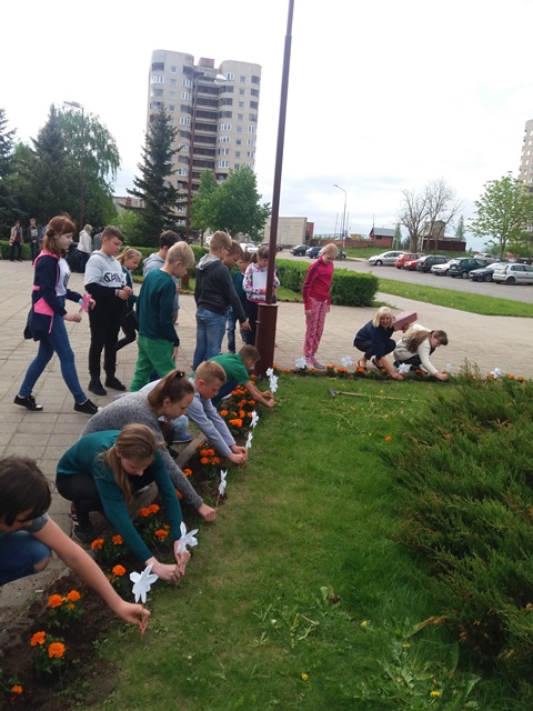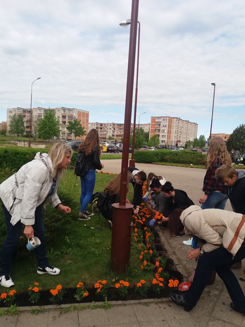 Tradiciškai puošėme mokyklą. Vyriausieji – aštuntokai – šiemet buvo atsakingi už gėlių pasodinimą progimnazijos kieme. Ir jie šį darbą atliko išties atsakingai ir stropiai. Gėlių pasodinome rekordiškai daug, todėl mūsų gėlynai dar išsiplėtė ir pagražėjo. Ačiū mokiniams, tėveliams ir jiems padėjusiems mokytojams.