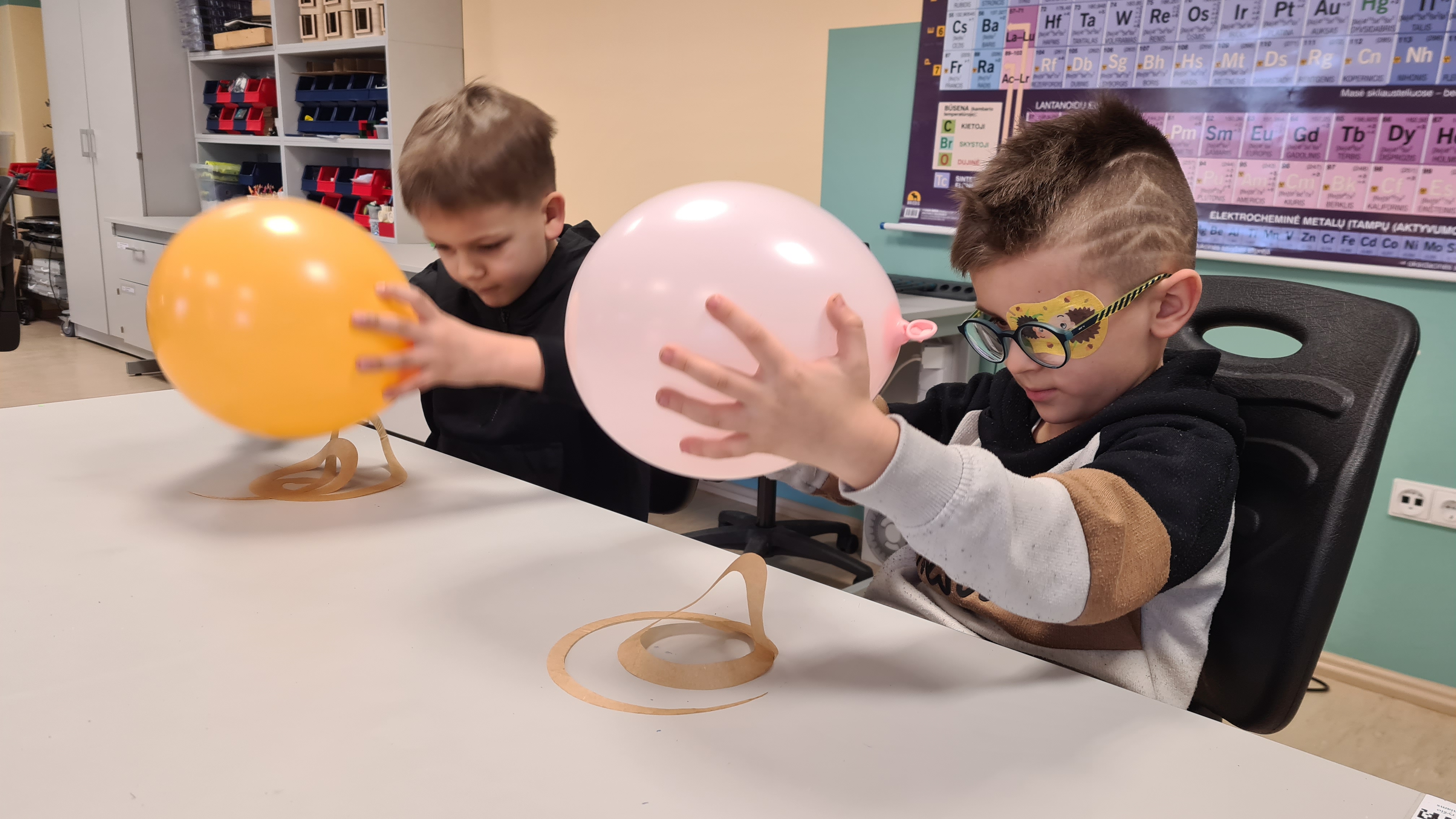 Veiklos metu įelektrinto baliono pagalba atskyrė pipirus nuo druskos, išmoko magiškai nukreipti vandens srovę ir sukūrė „gyvatėlių“ šokį. Sužinojo, kad trinant kūnus, jie įsielektrina. Taip pat išbandė interaktyvią šokių sistemą, šokdami lavino greitą reakciją, pusiausvyrą, dėmesį. Mažieji mokslininkai grįžo į mokyklą pasisėmę naujų žinių ir gerų emocijų.