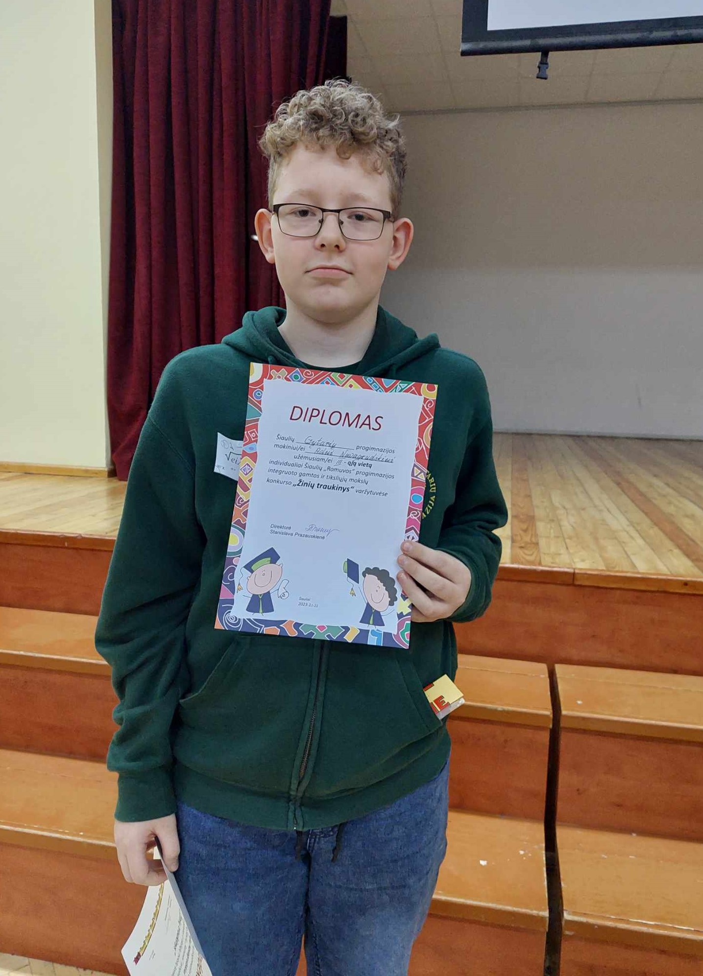 Lapkričio 21 d. dvi 5-8 kl. mokinių komandos (1 komanda: Liutauras Remeika 5a kl., Henrikas Remeika 6a kl., Augustė Stonytė 7a kl., Deimantė Navickaitė 8b kl.; 2 komanda: Emilija Dobrikaitė 5c kl., Adas Navagrudskis 6b kl., Imantas Bakčiūnas 7b kl., Sabina Ričkutė 8a kl.) dalyvavo į Šiaulių „Romuvos“ integruotame tiksliųjų ir gamtos mokslų konkurse „Žinių traukinys“. Komandos varžėsi su komandomis iš dešimties Šiaulių miesto progimnazijų. Gavę žemėlapius komandos išvyko į nurodytas šalis: fizikos, IT, matematikos, chemijos ir biologijos. Fizikos šalyje užsidėję apsauginius akinius ir pasinaudodami lazeriniais šviesos šaltiniais mokiniai turėjo tyrinėti šviesos spindulių eigą vandenyje ir stikle. Informatikos šalies stotelėje atliko programavimo ir skaičiuoklės užduotis. Atliekant užduotis reikėjo pasitelkti ne tik informatikos, bet matematikos žinias.